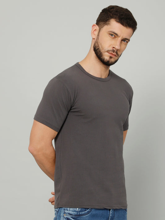 T-Shirt for Men (Grey Color) - 100% Cotton Casual T-Shirt | Half Sleeve, Round Neck 4 Way Stretch Fabric | Slim Fit T-Shirt