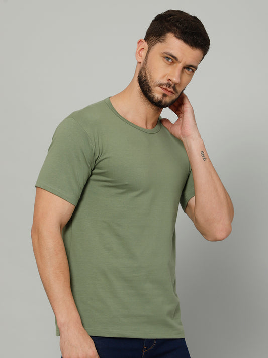 Olive Green T-Shirt for Men - 100% Cotton Casual T-Shirt | Half Sleeve, Round Neck 4 Way Stretch Fabric | Slim Fit T-Shirt