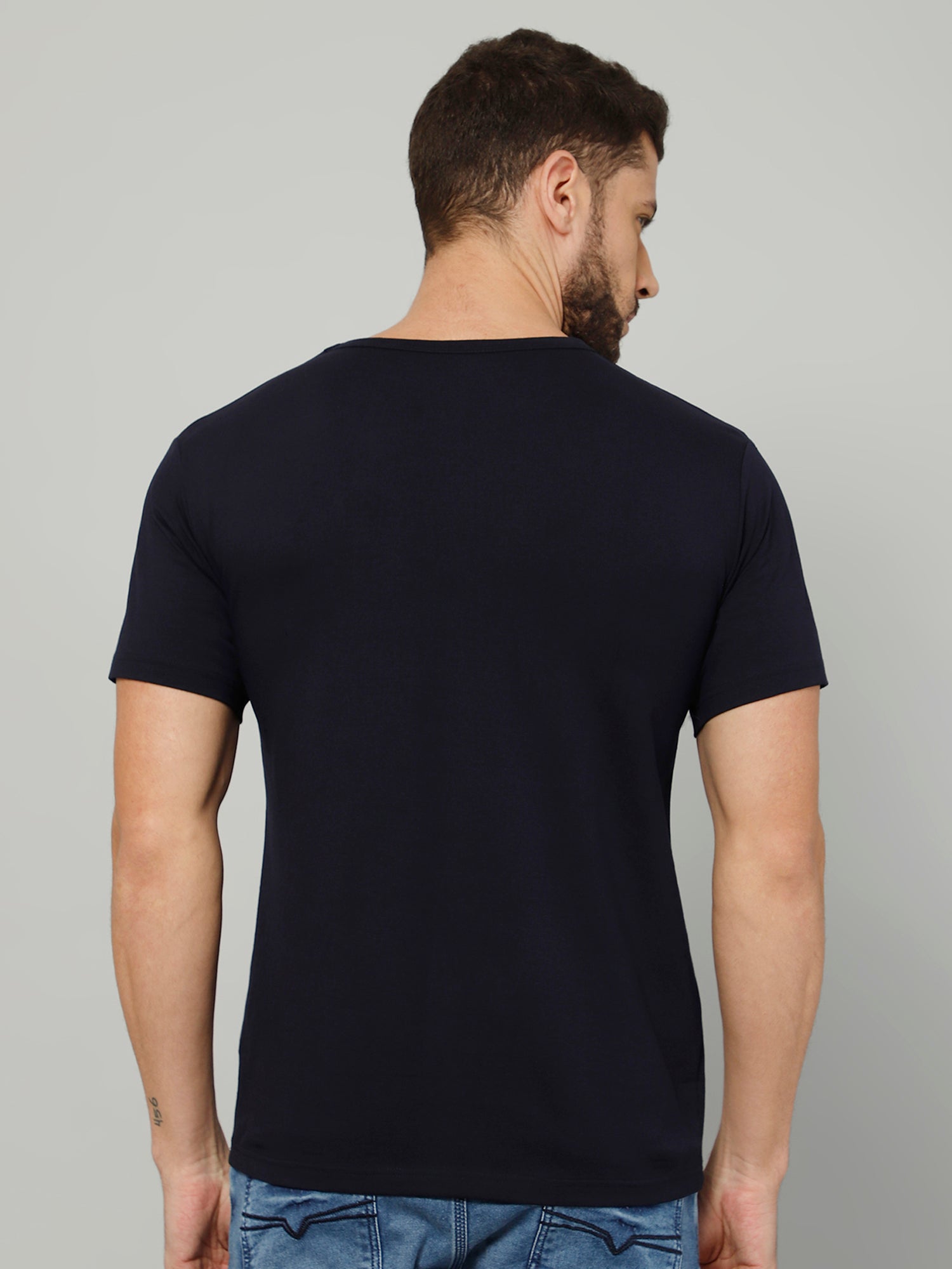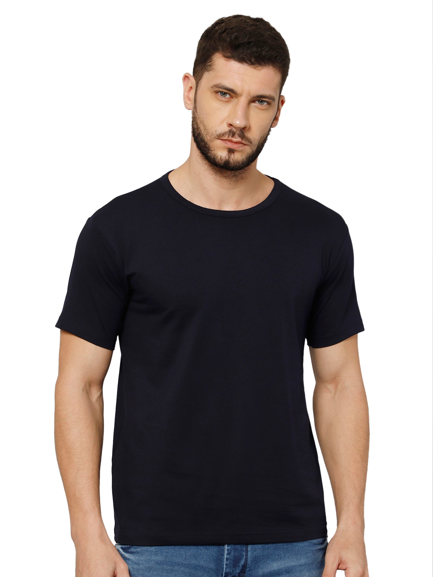 T-Shirt for Men (Navy Blue) - 100% Cotton Casual T-Shirt | Half Sleeve, Round Neck 4 Way Stretch Fabric | Slim Fit T-Shirt