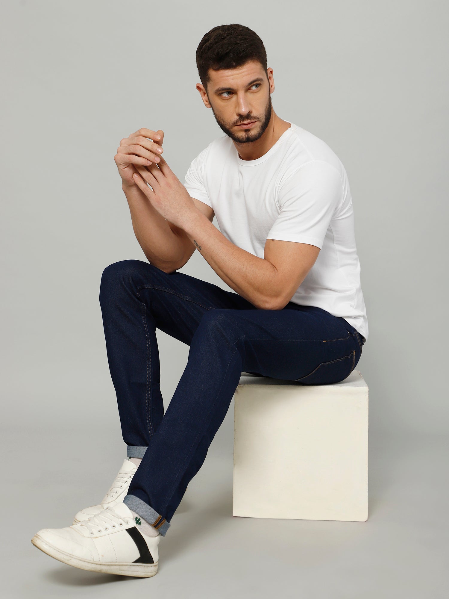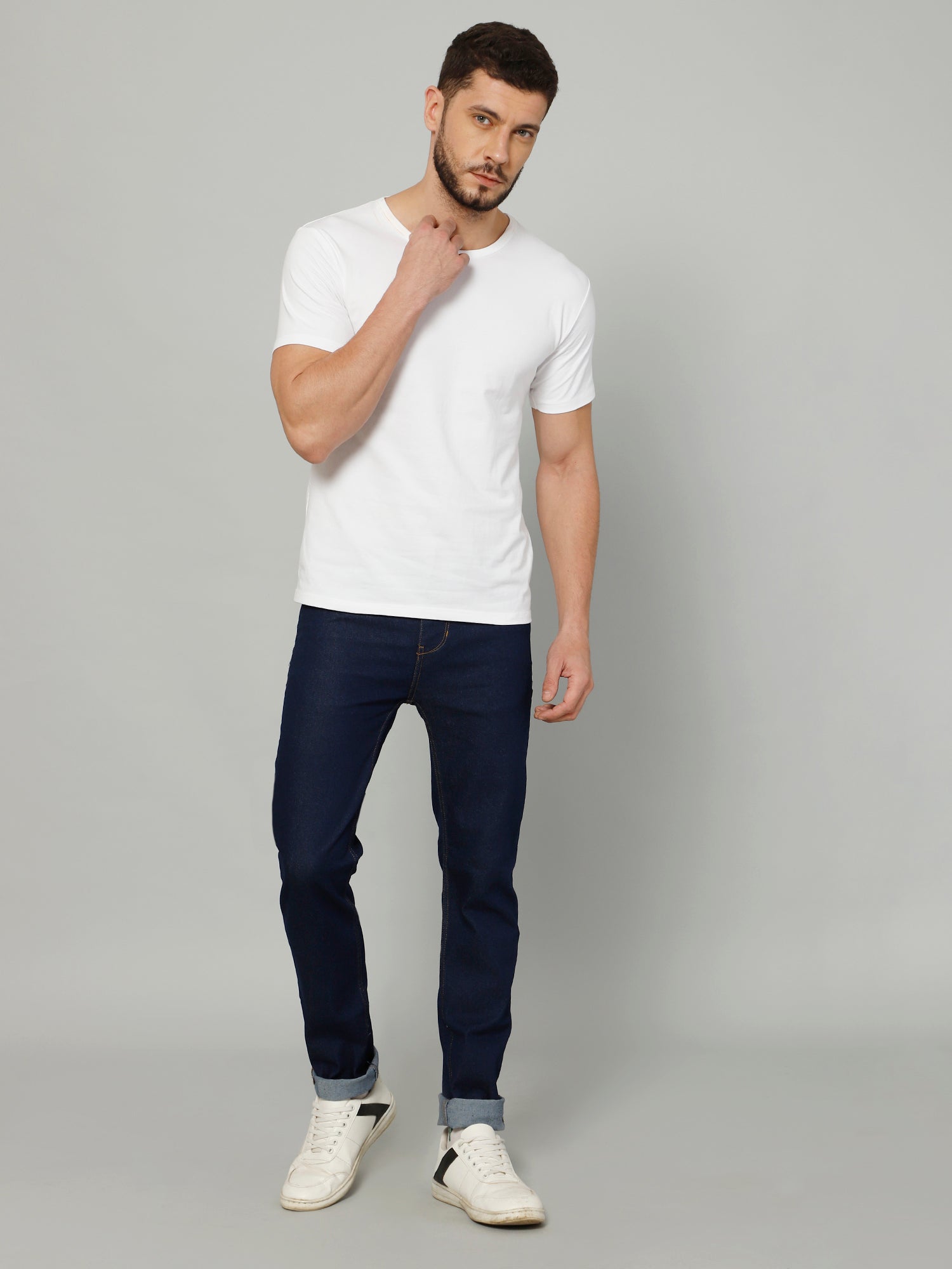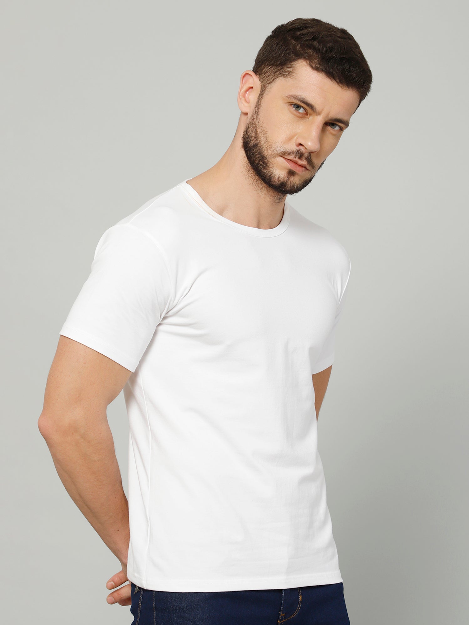 White T-Shirt for Men - 100% Cotton Casual T-Shirt | Half Sleeve, Round Neck 4 Way Stretch Fabric | Slim Fit T-Shirt