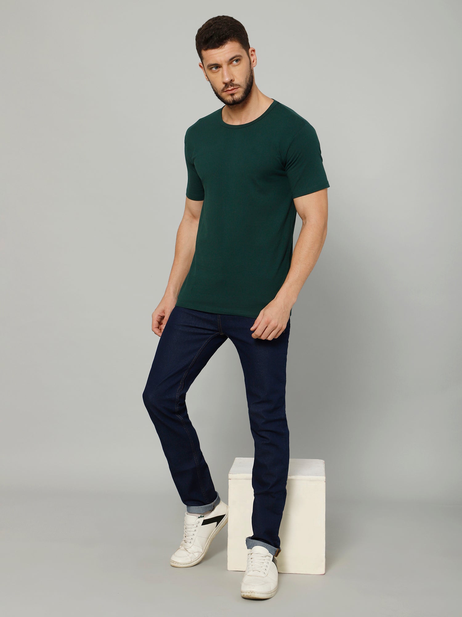 T-Shirt for Men (Jungle Green) - 100% Cotton Casual T-Shirt | Half Sleeve, Round Neck 4 Way Stretch Fabric | Slim Fit T-Shirt