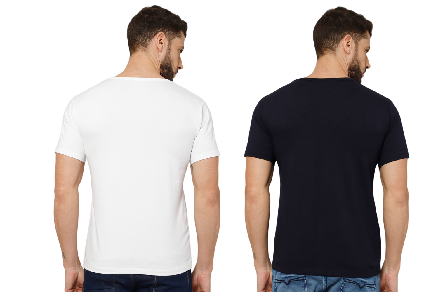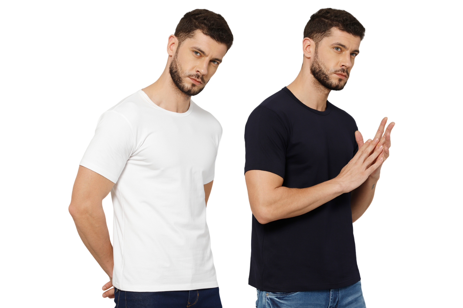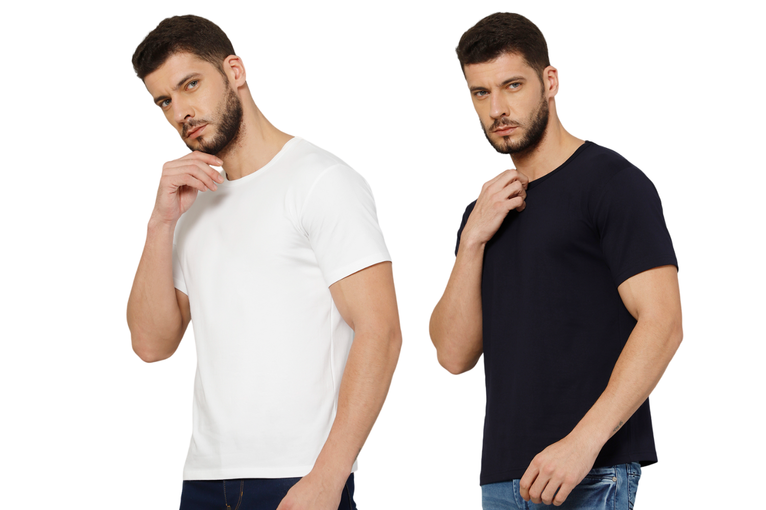T-Shirt for Men (Navy Blue + White) - 100% Cotton Casual T-Shirt | Half Sleeve, Round Neck 4 Way Stretch Fabric | Slim Fit T-Shirt (Pack of 2)