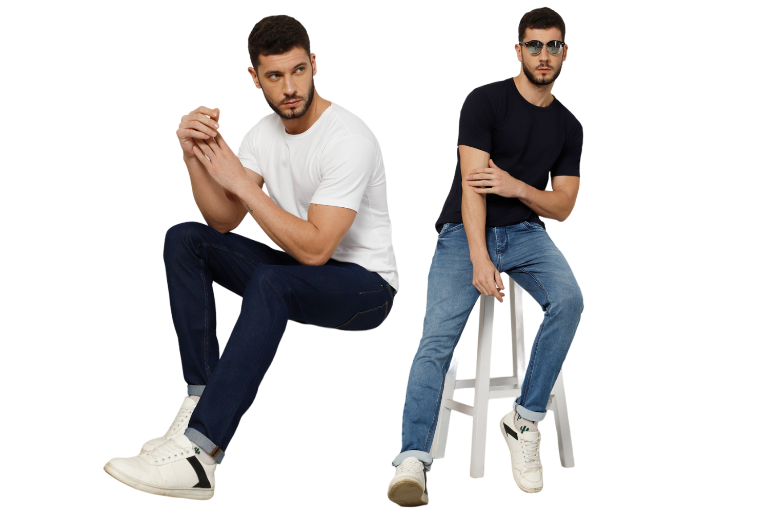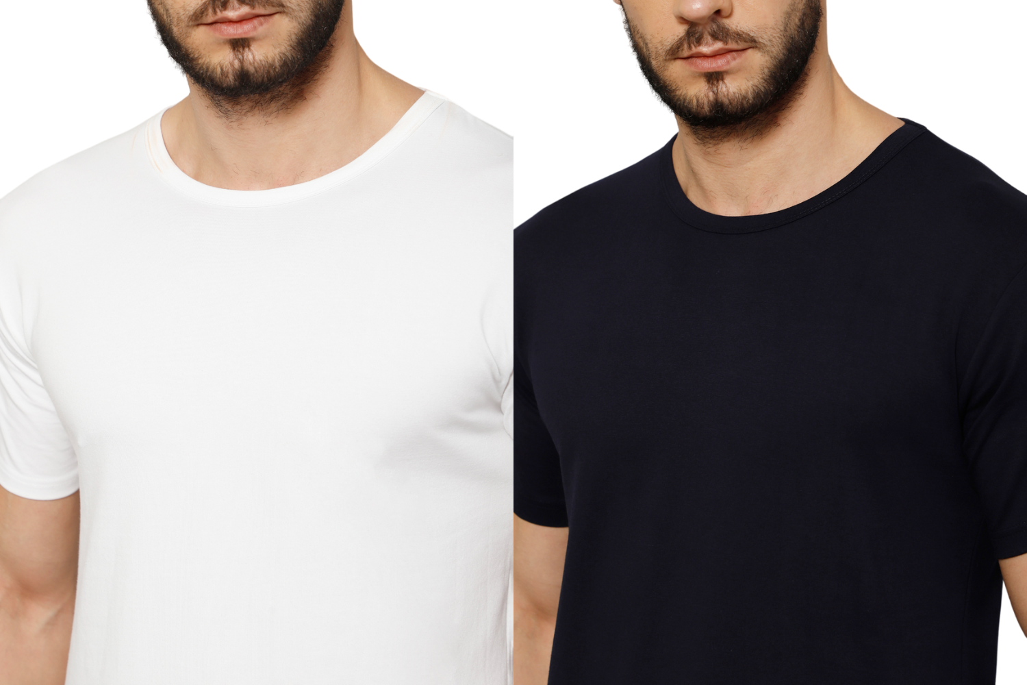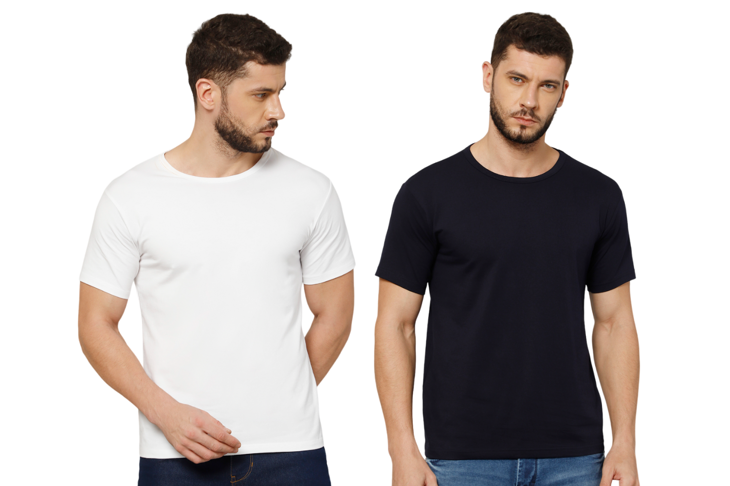 T-Shirt for Men (Navy Blue + White) - 100% Cotton Casual T-Shirt | Half Sleeve, Round Neck 4 Way Stretch Fabric | Slim Fit T-Shirt (Pack of 2)